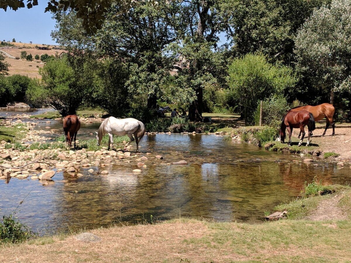 Caminaremos bajo la sombra de los imponentes pinos silvestres, disfrutando del sonido constante del agua y las pequeñas cascadas que forma el río. La joya de la jornada será la parada para comer en el campo, en una pradera junto a la orilla del río. Este momento tendrá un encanto especial, ya que estaremos rodeados de caballos sueltos que pastan habitualmente por la zona, ofreciendo una estampa bucólica inigualable.