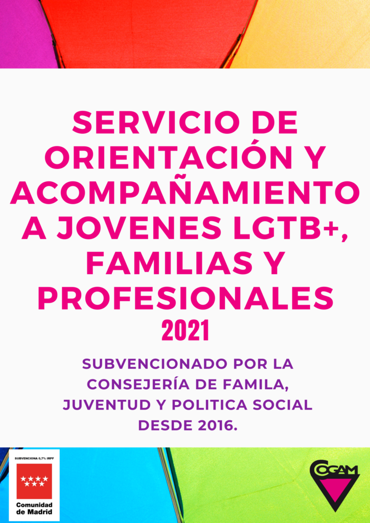 El programa de Orientación y Acompañamiento a Jóvenes LGTB+ está destinado a ofrecer información, asesoramiento y apoyo emocional a personas jóvenes LGTB (entre 15 y 30 años).