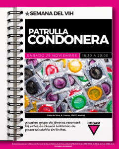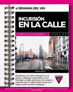 Saldremos a la calle conversar con la gente y despejar mitos sobre el VIH. Participa en esta activación con COGAM y descubre que la información veraz es la mejor vacuna contra el estigma.