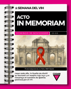 A las 20.00 horas tiene lugar la lectura del Manifiesto del acto «In Memoriam» en recuerdo y reivindicación de todas las personas con VIH/sida, por las que siguen y por las que no.